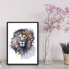Adquira agora o Quadro Decorativo Floral Leão Aquarela 24X18Cm e deixe sua decoração ainda mais especial!