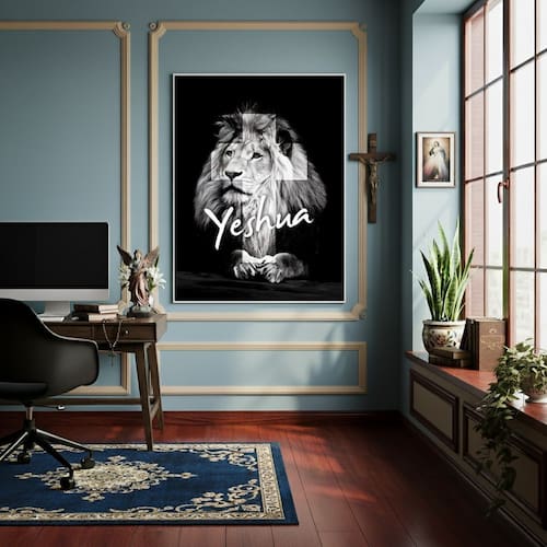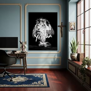 Quadro Leão da tribo de Judá - Símbolo de Força - 70x50cm - Cor: Moldura Branca