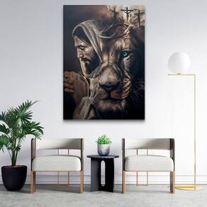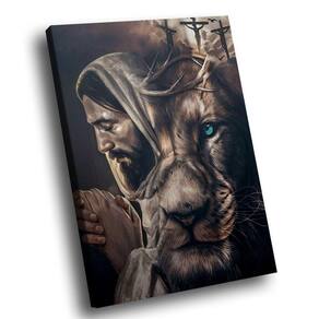 Quadro Leão De Judá E Cristo -- Br Artes Quadro Leão de Judá e Cristo -- BR ARTES M (84 x 54) - Qualidade Premium (padrão museu)