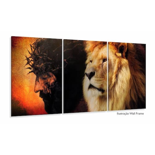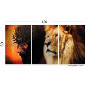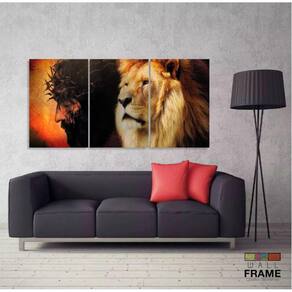 Quadro Leão de Juda Jesus Igreja 3 Peças 120x60 em tecido