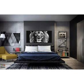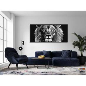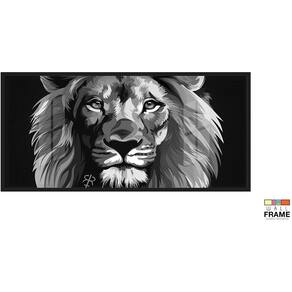Quadro leão de Juda Preto e branco 130x60 Moldura Preta 2x2