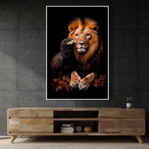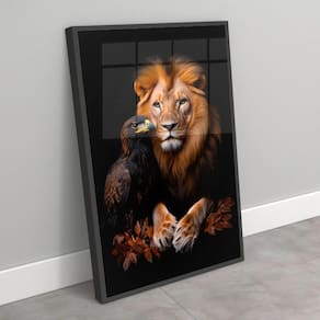 Quadro leão e águia - 70x50cm Cor: moldura preta Informações do produto tire todas as suas dúvidas no descritivo abaixo: decoração para quarto, sala, cozinha, escritório, área gourmet e muito mais. Chega de paredes vazias medidas - cada peça tem 70x50cm . Material do papel - papel fotográfico brilhante de altíssima resolução acabamento - todos os quadros são acompanhados de vidro para proteção da imagem. - moldura em madeira maciça na cor preta ou branca conforme produto escolhido e pendurador. - os quadros são embalados de forma segura com plástico bolha com camada dupla de acordo com o tamanho dos quadros. - de 3 meses. Meu quadro chegou. Como posso fixá-lo Você precisa apenas de um martelo e um prego, pois os quadros já vão acompanhados de penduradores. Esta é a forma mais indicada. Como posso limpar meu quadro A limpeza é feita como um móvel comum da sua casa. Apenas um pano seco ou espanador são suficientes para tal Marca: Não Informado