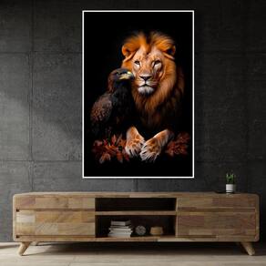Quadro leão e águia - 70x50cm Cor: moldura branca Informações do produto tire todas as suas dúvidas no descritivo abaixo: decoração para quarto, sala, cozinha, escritório, área gourmet e muito mais. Chega de paredes vazias medidas - cada peça tem 70x50cm . Material do papel - papel fotográfico brilhante de altíssima resolução acabamento - todos os quadros são acompanhados de vidro para proteção da imagem. - moldura em madeira maciça na cor preta ou branca conforme produto escolhido e pendurador. - os quadros são embalados de forma segura com plástico bolha com camada dupla de acordo com o tamanho dos quadros. - de 3 meses. Meu quadro chegou. Como posso fixá-lo Você precisa apenas de um martelo e um prego, pois os quadros já vão acompanhados de penduradores. Esta é a forma mais indicada. Como posso limpar meu quadro A limpeza é feita como um móvel comum da sua casa. Apenas um pano seco ou espanador são suficientes para tal Marca: Não Informado