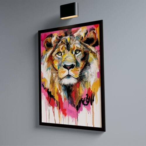 Quadro Leão Grafite Color Quadro Leão Grafite Color M (84x54) C/ Moldura Preta - - Qualidade Premium (padrão museu)