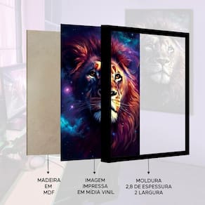 - Moldura sem vidro (Por que não vai com vidro? Como nossas imagens são impressas em material vinil altamente durável, dispensa o uso do vidro. Fique tranquilo, sua imagem não corre o risco de desbotar);