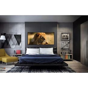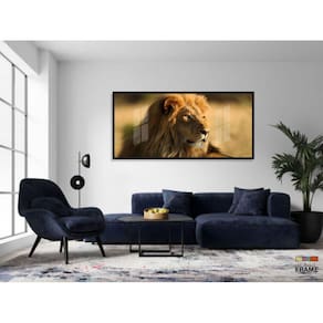 Quadro Leão na Natureza decorativo 130x60 Moldura Preta 2x2