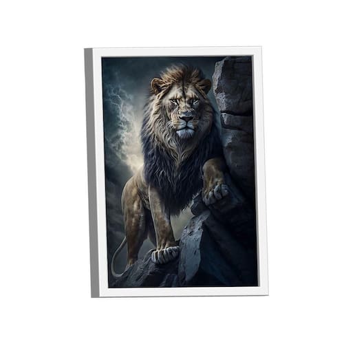 Quadro Leão Nas Montanhas -- BR ARTES Moldura Branca - Gigante 180x105 -