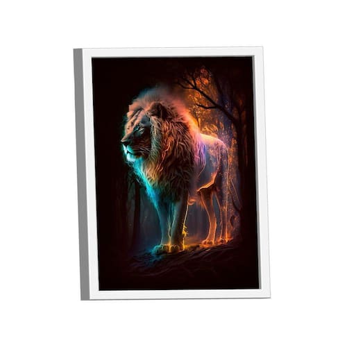 Quadro Leão Neon -- BR ARTES Moldura Branca - Pequeno 60x40 -