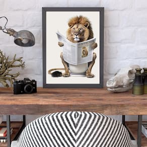 Quadro Leão No Banheiro Lendo Jornal 33X24Cm