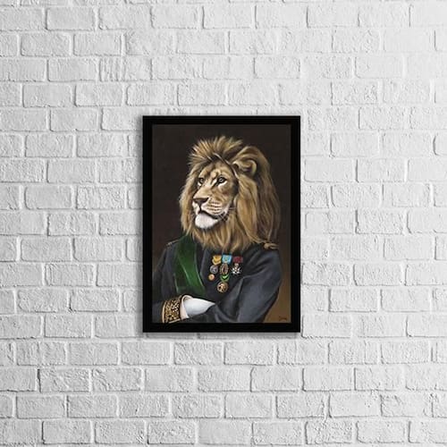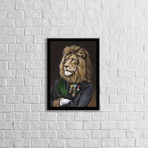 Quadro leão nobre 24x18cm Moldura: madeira preta Informações do produto tire todas as suas dúvidas no descritivo abaixo: decoração para quarto, sala, cozinha, escritório, área gourmet e muito mais. Chega de paredes vazias medidas - cada peça tem 24x18cm a5 . Material do papel - papel fotográfico brilhante de altíssima resolução acabamento - todos os quadros são acompanhados de uma película de acetato para proteção da imagem. - moldura em madeira maciça na cor branca e pendurador móvel que pode ser retirado facilmente caso deseje fixar com fita dupla face. - os quadros são embalados de forma segura com plástico bolha com camada dupla de acordo com o tamanho dos quadros. - de 3 meses prazo de envio pedimos 24 horas úteis no máximo para enviar seu pedido após o envio, segue os prazos normais dos correios, cerca de 7 dias úteis exceto para norte e nordeste, que pode ser de até 14 dias úteis. Em diversas cidades, este prazo normalmente é reduzido, mas depende do prazo dos correios. Meu quadro chegou. Como posso fixá-lo Você precisa apenas de um martelo e um prego, pois os quadros já vão acompanhados de penduradores. Esta é a forma mais indicada. Caso prefira, você pode utilizar uma fita dupla face neste caso, sugerimos de alta qualidade para evitar que descole e seu quadro caia . Como posso limpar meu quadro A limpeza é feita como um móvel comum da sua casa. Apenas um pano seco ou espanador são suficientes para tal