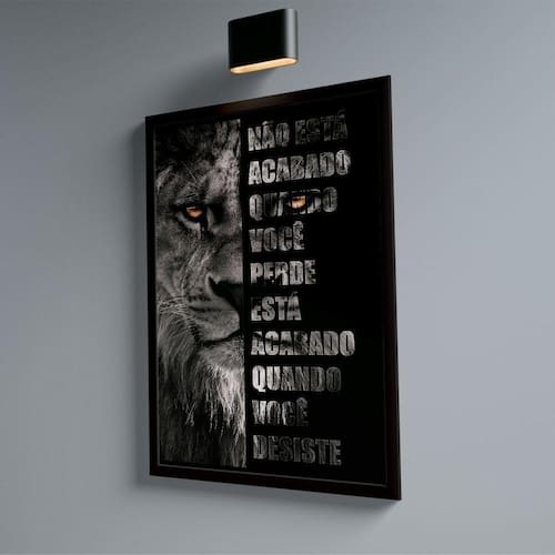 Quadro Leão Nunca Desista Quadro Leão Nunca Desista GG (150X100) C/ Moldura Preta - Qualidade Premium (padrão museu)