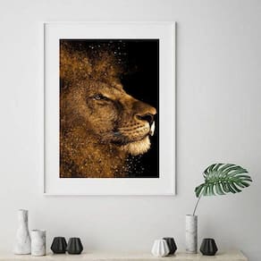 Quadro leão ouro - 60x48cm Moldura: madeira preta Informações do produto tire todas as suas dúvidas no descritivo abaixo: decoração para quarto, sala, cozinha, escritório, área gourmet e muito mais. Chega de paredes vazias medidas - cada peça tem 60x48cm . Material do papel - papel fotográfico brilhante de altíssima resolução acabamento - todos os quadros são acompanhados de vidro para proteção da imagem. - moldura em madeira maciça na cor preta ou branca conforme produto escolhido e pendurador. - paspatur branco com 7cm de largura - os quadros são embalados de forma segura com plástico bolha com camada dupla de acordo com o tamanho dos quadros. Garantia - garantia de 3 meses. Meu quadro chegou. Como posso fixá-lo Você precisa apenas de um martelo e um prego, pois os quadros já vão acompanhados de penduradores. Esta é a forma mais indicada. Como posso limpar meu quadro A limpeza é feita como um móvel comum da sua casa. Apenas um pano seco ou espanador são suficientes para tal