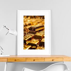 Quadro Lei Atração Barras Ouro - 60x48cm - Cor: Moldura Branca