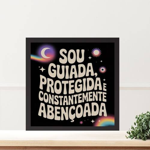 Quadro lei atração guiada e abençoada - 33x33cm Cor: moldura preta Informações do produto tire todas as suas dúvidas no descritivo abaixo: decoração para quarto, sala, cozinha, escritório, área gourmet e muito mais. Chega de paredes vazias medidas - cada peça tem 33x33cm. Material do papel - papel fotográfico brilhante de altíssima resolução acabamento - todos os quadros são acompanhados de uma película de acetato para proteção da imagem. - os quadros são embalados de forma segura com plástico bolha com camada dupla de acordo com o tamanho dos quadros. - de 3 meses. Meu quadro chegou. Como posso fixá-lo Você precisa apenas de um martelo e um prego, pois os quadros já vão acompanhados de penduradores. Esta é a forma mais indicada. Caso prefira, você pode utilizar uma fita dupla face neste caso, sugerimos de alta qualidade para evitar que descole e seu quadro caia . Como posso limpar meu quadro A limpeza é feita como um móvel comum da sua casa. Apenas um pano seco ou espanador são suficientes para tal Marca: Não Informado