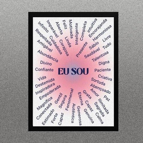 Quadro lei da atração - afirmações eu sou 45x34cm - com vidro Moldura: madeira preta Informações do produto tire todas as suas dúvidas no descritivo abaixo: decoração para quarto, sala, cozinha, escritório, área gourmet e muito mais. Chega de paredes vazias medidas - cada peça tem 45x34cm a3 . Material do papel - papel fotográfico brilhante de altíssima resolução acabamento - todos os quadros são acompanhados de vidro para proteção da imagem. - moldura em madeira maciça na cor preta ou branca conforme produto escolhido e pendurador . - os quadros são embalados de forma segura com plástico bolha com camada dupla de acordo com o tamanho dos quadros. Garantia - garantia de 3 meses. Meu quadro chegou. Como posso fixá-lo Você precisa apenas de um martelo e um prego, pois os quadros já vão acompanhados de penduradores. Esta é a forma mais indicada. Como posso limpar meu quadro A limpeza é feita como um móvel comum da sua casa. Apenas um pano seco ou espanador são suficientes para tal