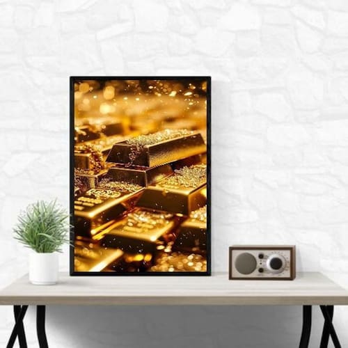 Quadro lei da atração - barras de ouro 45x34cm