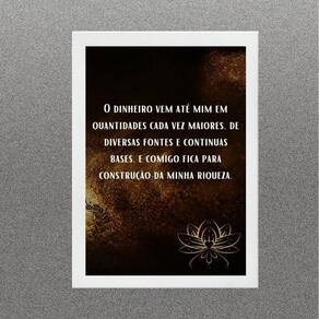 Quadro lei da atração - cocriação dinheiro 24x18cm Moldura: madeira branca Informações do produto tire todas as suas dúvidas no descritivo abaixo: decoração para quarto, sala, cozinha, escritório, área gourmet e muito mais. Chega de paredes vazias medidas - cada peça tem 24x18cm a5 . Material do papel - papel fotográfico brilhante de altíssima resolução acabamento - todos os quadros são acompanhados de uma película de acetato para proteção da imagem. - os quadros são embalados de forma segura com plástico bolha com camada dupla de acordo com o tamanho dos quadros. Garantia - garantia de 3 meses. Meu quadro chegou. Como posso fixá-lo Você precisa apenas de um martelo e um prego, pois os quadros já vão acompanhados de penduradores. Esta é a forma mais indicada. Caso prefira, você pode utilizar uma fita dupla face neste caso, sugerimos de alta qualidade para evitar que descole e seu quadro caia . Como posso limpar meu quadro A limpeza é feita como um móvel comum da sua casa. Apenas um pano seco ou espanador são suficientes para tal