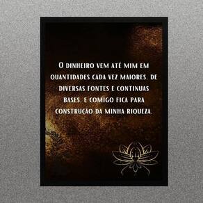Quadro lei da atração - cocriação dinheiro 45x34cm Moldura: madeira preta Informações do produto tire todas as suas dúvidas no descritivo abaixo: decoração para quarto, sala, cozinha, escritório, área gourmet e muito mais. Chega de paredes vazias. Medidas - cada peça tem 45x34cm a3 . Material do papel - papel fotográfico brilhante de altíssima resolução acabamento - todos os quadros são acompanhados de uma película de acetato para proteção da imagem. - os quadros são embalados de forma segura com plástico bolha com camada dupla de acordo com o tamanho dos quadros. Garantia - garantia de 3 meses. Meu quadro chegou. Como posso fixá-lo Você precisa apenas de um martelo e um prego, pois os quadros já vão acompanhados de penduradores. Esta é a forma mais indicada. Caso prefira, você pode utilizar uma fita dupla face neste caso, sugerimos de alta qualidade para evitar que descole e seu quadro caia . Como posso limpar meu quadro A limpeza é feita como um móvel comum da sua casa. Apenas um pano seco ou espanador são suficientes para tal