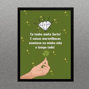 Quadro lei da atração - sorte 24x18cm - com vidro Moldura: madeira branca Informações do produto tire todas as suas dúvidas no descritivo abaixo: decoração para quarto, sala, cozinha, escritório, área gourmet e muito mais. Chega de paredes vazias medidas - cada peça tem 24x18cm a5 . Material do papel - papel fotográfico brilhante de altíssima resolução acabamento - todos os quadros são acompanhados de vidro para proteção da imagem. - moldura em madeira maciça na cor preta ou branca conforme produto escolhido e pendurador . - os quadros são embalados de forma segura com plástico bolha com camada dupla de acordo com o tamanho dos quadros. Garantia - garantia de 3 meses. Meu quadro chegou. Como posso fixá-lo Você precisa apenas de um martelo e um prego, pois os quadros já vão acompanhados de penduradores. Esta é a forma mais indicada. Como posso limpar meu quadro A limpeza é feita como um móvel comum da sua casa. Apenas um pano seco ou espanador são suficientes para tal