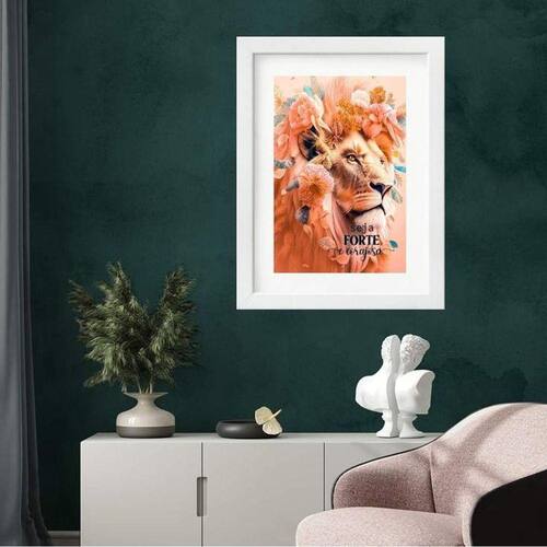 Quadro leoa seja forte e corajosa - 60x48cm Moldura: madeira preta Informações do produto tire todas as suas dúvidas no descritivo abaixo: decoração para quarto, sala, cozinha, escritório, área gourmet e muito mais. Chega de paredes vazias medidas - cada peça tem 60x48cm . Material do papel - papel fotográfico brilhante de altíssima resolução acabamento - todos os quadros são acompanhados de vidro para proteção da imagem. - moldura em madeira maciça na cor preta ou branca conforme produto escolhido e pendurador. - paspatur branco com 7cm de largura - os quadros são embalados de forma segura com plástico bolha com camada dupla de acordo com o tamanho dos quadros. Garantia - garantia de 3 meses. Meu quadro chegou. Como posso fixá-lo Você precisa apenas de um martelo e um prego, pois os quadros já vão acompanhados de penduradores. Esta é a forma mais indicada. Como posso limpar meu quadro A limpeza é feita como um móvel comum da sua casa. Apenas um pano seco ou espanador são suficientes para tal