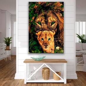 Quadro Leões da Selva Colorido -- BR ARTES G (118 x 78) -