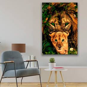 Quadro Leões da Selva Colorido -- BR ARTES Pequeno 60x40 -