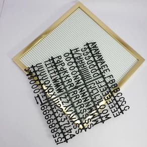 Quadro Letreiro Decorativo Dourado Letter Board 145 Letras Contém: 01 Quadro Letreiro Decorativo Dourado Letter Board 145 Peças Decoração de quarto, sala, festas de aniversário, casamento, etc. Dê um up no seu ambiente com um quadro de letras, perfeito para deixar aquele recadinho especial ou desejar um bom dia. - Tamanho: 30 x 30 cm - Acompanha: quadro letreiro com 145 caracteres de material plástico incluindo números e letras.
