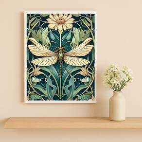 Quadro Libélula Art Deco Nouveau 24x18cm Mold Branca