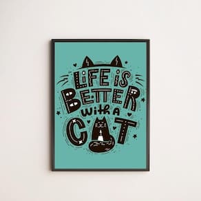 Quadro life is better with a cat 33x24cm - com vidro Moldura: madeira branca Informações do produto tire todas as suas dúvidas no descritivo abaixo: decoração para quarto, sala, cozinha, escritório, área gourmet e muito mais. Chega de paredes vazias medidas - cada peça tem 33x24cm a4 . Material do papel - papel fotográfico brilhante de altíssima resolução acabamento - todos os quadros são acompanhados de vidro para proteção da imagem. - moldura em madeira maciça na cor preta e pendurador . - os quadros são embalados de forma segura com plástico bolha com camada dupla de acordo com o tamanho dos quadros. Garantia - garantia de 3 meses. Meu quadro chegou. Como posso fixá-lo Você precisa apenas de um martelo e um prego, pois os quadros já vão acompanhados de penduradores. Esta é a forma mais indicada. Como posso limpar meu quadro A limpeza é feita como um móvel comum da sua casa. Apenas um pano seco ou espanador são suficientes para tal Ean: 7895142246293