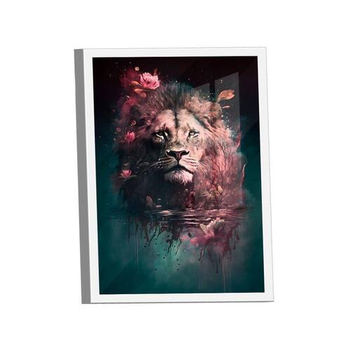 Quadro Lion Flower Art -- Br Artes Quadro Lion Flower Art -- BR ARTES Moldura Branca e Vidro - Gigante 180x105 - - Qualidade Premium (padrão museu)