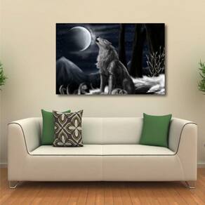 Quadro Lobo Uivando Paisagem decorativo com Tela em Tecido 1
