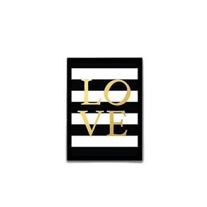 Quadro love - fundo listrado 24x18cm - com vidro Moldura: madeira preta