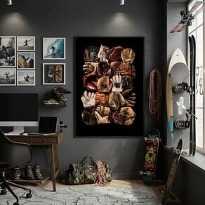 Quadro Luvas De Beisebol 70x50cm Mold Branca
