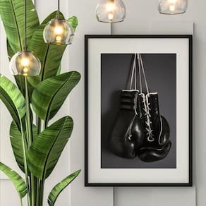 Quadro luvas de boxe preta - 60x48cm Moldura: madeira branca Informações do produto tire todas as suas dúvidas no descritivo abaixo: decoração para quarto, sala, cozinha, escritório, área gourmet e muito mais. Chega de paredes vazias medidas - cada peça tem 60x48cm . Material do papel - papel fotográfico brilhante de altíssima resolução acabamento - todos os quadros são acompanhados de vidro para proteção da imagem. - moldura em madeira maciça na cor preta ou branca conforme produto escolhido e pendurador. - paspatur branco com 7cm de largura - os quadros são embalados de forma segura com plástico bolha com camada dupla de acordo com o tamanho dos quadros. Garantia - garantia de 3 meses. Meu quadro chegou. Como posso fixá-lo Você precisa apenas de um martelo e um prego, pois os quadros já vão acompanhados de penduradores. Esta é a forma mais indicada. Como posso limpar meu quadro A limpeza é feita como um móvel comum da sua casa. Apenas um pano seco ou espanador são suficientes para tal