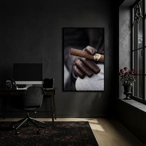 Quadro Luvas de Couro Segurando um Charuto - 70x50cm - Cor: Moldura Preta