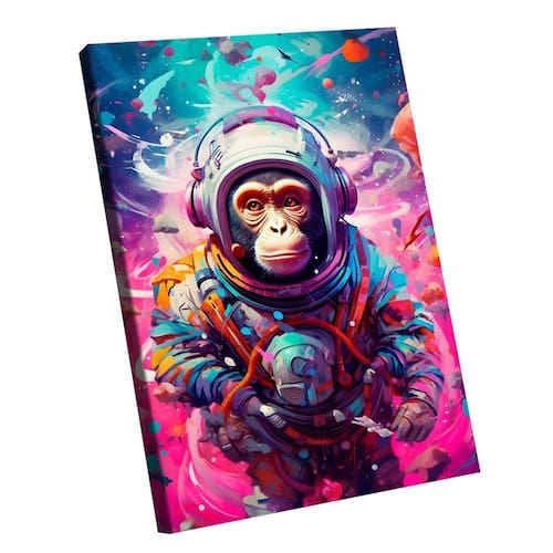 Quadro Macaco Astronauta -- BR ARTES Borda Infinita - Médio 84x54 -