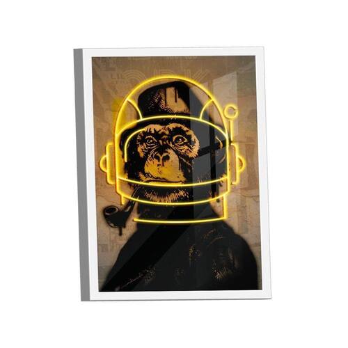 Quadro Macaco Reluzente -- Br Artes Quadro Macaco Reluzente -- BR ARTES Moldura Branca e Vidro - Gigante 180x105 - - Qualidade Premium (padrão museu)