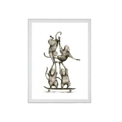 Quadro macaquinhos no skate 45x34cm Moldura: madeira branca Informações do produto tire todas as suas dúvidas no descritivo abaixo: decoração para quarto, sala, cozinha, escritório, área gourmet e muito mais. Chega de paredes vazias medidas - cada peça tem 45x34cm a3 . Material do papel - papel fotográfico brilhante de altíssima resolução acabamento - todos os quadros são acompanhados de uma película de acetato para proteção da imagem. - moldura em madeira maciça na cor preta e pendurador móvel que pode ser retirado facilmente caso deseje fixar com fita dupla face. - os quadros são embalados de forma segura com plástico bolha com camada dupla de acordo com o tamanho dos quadros.
