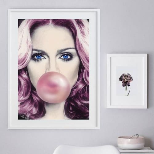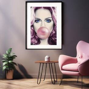 Quadro madona bubble gum 60x48cm Moldura: madeira preta Informações do produto tire todas as suas dúvidas no descritivo abaixo: decoração para quarto, sala, cozinha, escritório, área gourmet e muito mais. Chega de paredes vazias medidas - cada peça tem 60x48cm . Material do papel - papel fotográfico brilhante de altíssima resolução acabamento - todos os quadros são acompanhados de vidro para proteção da imagem. - moldura em madeira maciça na cor preta ou branca conforme produto escolhido e pendurador. - paspatur branco com 7cm de largura - os quadros são embalados de forma segura com plástico bolha com camada dupla de acordo com o tamanho dos quadros. - de 3 meses. Meu quadro chegou. Como posso fixá-lo Você precisa apenas de um martelo e um prego, pois os quadros já vão acompanhados de penduradores. Esta é a forma mais indicada. Como posso limpar meu quadro A limpeza é feita como um móvel comum da sua casa. Apenas um pano seco ou espanador são suficientes para tal Marca: Não Informado