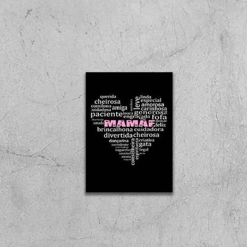 Quadro mamãe qualidades coração preto 24x18cm Moldura: madeira preta Informações do produto tire todas as suas dúvidas no descritivo abaixo: decoração para quarto, sala, cozinha, escritório, área gourmet e muito mais. Chega de paredes vazias medidas - cada peça tem 24x18cm a5 . Material do papel - papel fotográfico brilhante de altíssima resolução acabamento - todos os quadros são acompanhados de uma película de acetato para proteção da imagem. - moldura em madeira maciça na cor branca e pendurador móvel que pode ser retirado facilmente caso deseje fixar com fita dupla face. - os quadros são embalados de forma segura com plástico bolha com camada dupla de acordo com o tamanho dos quadros. - de 3 meses prazo de envio pedimos 24 horas úteis no máximo para enviar seu pedido após o envio, segue os prazos normais dos correios, cerca de 7 exceto para norte e nordeste, que pode ser de até 14 . Em diversas cidades, este prazo normalmente é reduzido, mas depende do prazo dos correios. Meu quadro chegou. Como posso fixá-lo Você precisa apenas de um martelo e um prego, pois os quadros já vão acompanhados de penduradores. Esta é a forma mais indicada. Caso prefira, você pode utilizar uma fita dupla face neste caso, sugerimos de alta qualidade para evitar que descole e seu quadro caia . Como posso limpar meu quadro A limpeza é feita como um móvel comum da sua casa. Apenas um pano seco ou espanador são suficientes para tal Marca: Não Informado