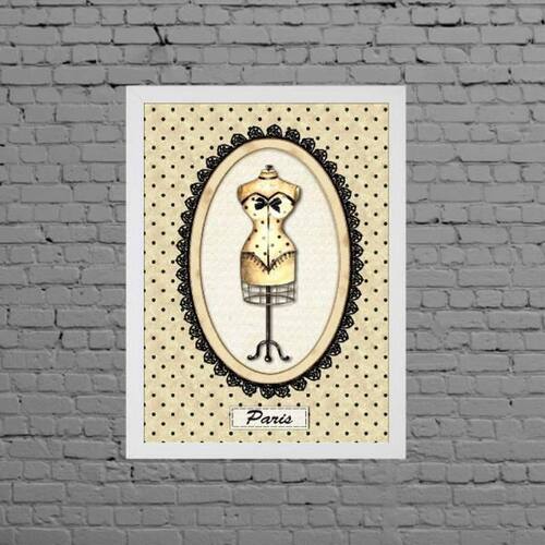 Quadro manequim de costura paris 33x24cm Moldura: madeira branca Informações do produto tire todas as suas dúvidas no descritivo abaixo: decoração para quarto, sala, cozinha, escritório, área gourmet e muito mais. Chega de paredes vazias medidas - cada peça tem 33x24cm a4 . Material do papel - papel fotográfico brilhante de altíssima resolução acabamento - todos os quadros são acompanhados de uma película de acetato para proteção da imagem. - moldura em madeira maciça na cor preta e pendurador móvel que pode ser retirado facilmente caso deseje fixar com fita dupla face. - os quadros são embalados de forma segura com plástico bolha com camada dupla de acordo com o tamanho dos quadros. Marca: Não Informado