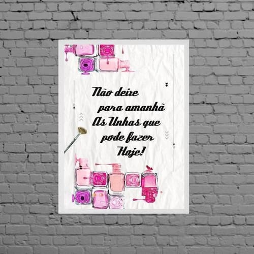 Quadro manicure não deixe para amanhã 33x24cm - com vidro Moldura: madeira branca Informações do produto tire todas as suas dúvidas no descritivo abaixo: decoração para quarto, sala, cozinha, escritório, área gourmet e muito mais. Chega de paredes vazias medidas - cada peça tem 33x24cm a4 . Material do papel - papel fotográfico brilhante de altíssima resolução acabamento - todos os quadros são acompanhados de vidro para proteção da imagem. - moldura em madeira maciça na cor preta e pendurador . - os quadros são embalados de forma segura com plástico bolha com camada dupla de acordo com o tamanho dos quadros. - de 3 meses. Meu quadro chegou. Como posso fixá-lo Você precisa apenas de um martelo e um prego, pois os quadros já vão acompanhados de penduradores. Esta é a forma mais indicada. Como posso limpar meu quadro A limpeza é feita como um móvel comum da sua casa. Apenas um pano seco ou espanador são suficientes para tal Marca: Não Informado