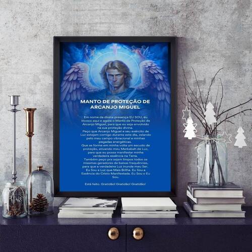 Quadro manto de proteção de arcanjo miguel 33x24cm Cor: moldura branca Informações do produto tire todas as suas dúvidas no descritivo abaixo: decoração para quarto, sala, cozinha, escritório, área gourmet e muito mais. Chega de paredes vazias medidas - cada peça tem 33x24cm a4 . Material do papel - papel fotográfico brilhante de altíssima resolução acabamento - todos os quadros são acompanhados de uma película de acetato para proteção da imagem. - os quadros são embalados de forma segura com plástico bolha com camada dupla de acordo com o tamanho dos quadros. Garantia - garantia de 3 meses. Meu quadro chegou. Como posso fixá-lo Você precisa apenas de um martelo e um prego, pois os quadros já vão acompanhados de penduradores. Esta é a forma mais indicada. Caso prefira, você pode utilizar uma fita dupla face neste caso, sugerimos de alta qualidade para evitar que descole e seu quadro caia . Como posso limpar meu quadro A limpeza é feita como um móvel comum da sua casa. Apenas um pano seco ou espanador são suficientes para tal