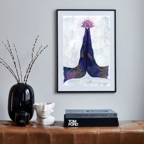 Quadro Mão Namastê Mudra - 60x48cm - Moldura: Madeira branca