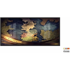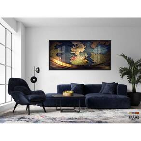 Quadro Mapa Game Of Thrones Westeros Decorativo 130x60 Moldura Preta 2x2