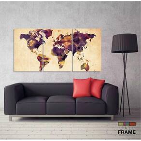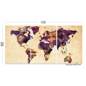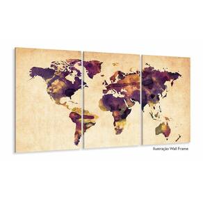 Quadro Mapa Mundi Colorido Vintage Em Tecido 3 Peças 125x60