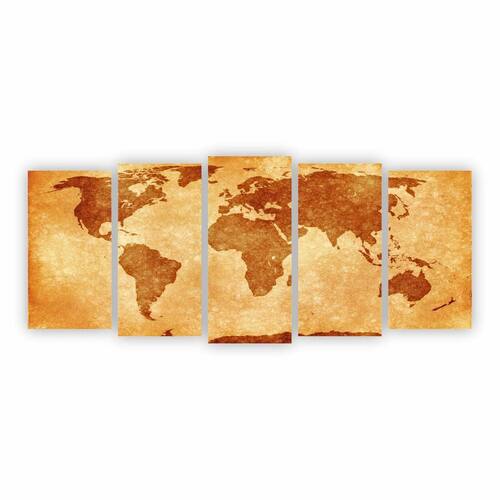Quadro Mapa Mundi Decorativo Tons Terrosos Em Canvas 155X65 Conhecendo mais sobre o quadro de tela canvas: FABRICAÇÃO: Todo nosso processo é de fabricação própria e cuidamos cada detalhe para que seu quadro saia em perfeitas condições e que você tenha um impacto visual inesquecível. IMPRESSÃO: Altíssima qualidade, sem dúvida a melhor opção para impressão em tecido canvas, realçando os detalhes, deixando suas telas com aparência natural e mantendo as cores vivas por anos CANVAS: Sua experiência com esse material será inesquecível, pode achar que não conhece tecido canvas, com certeza você já deve ter visto um quadro em tela, como uma pintura ou em um museu, pois o mesmo é utilizado para as mais belas pinturas. O tecido canvas é um material 100% algodão com preparação especial com tratamento anti bacteriano e antimofo e com verniz semibrilho, apropriada para a impressão. CHASSI madeira : É a estrutura de madeira eucalipto beneficiado de reflorestamento onde o tecido impresso é esticado cuidadosamente. A melhor estrutura para quadros e telas Com madeira de 3X2,3cm de espessura, chanfrada para não marcar a parte frontal de sua tela, é grampeada pelo verso dando um acabamento especial, onde suas imagens aparecem até mesmo na volta da madeira Assim seu quadro chega pronto para pendurar e não necessita de moldura EMBALAGEM: Feita cuidadosamente envolvendo as peças com filme stretch pvc, para que diminua quase a zero as chances de marcar de alguma maneira seu quadro no transporte. O mesmo é colocado em uma caixa feita especialmente para o seu tamanho de quadro, assim seu quadro fica bem mais firme dentro da embalagem. TAMANHO: Conjunto de 5 quadros conjugados com imagem em continuidade com medida total de 155x65cm, sendo: 2 quadros de 30x55cm; 2 quadros de 30x60cm; 1 quadros de 30x65cm; Acompanha Manual com Dicas de Instalação. Marca: Não Informado