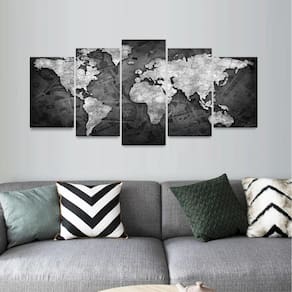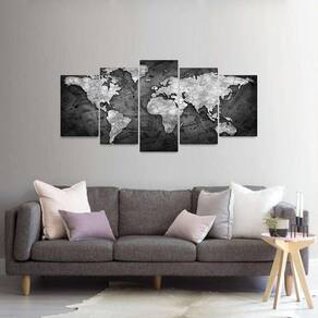 Quadro Mapa Mundi Money Para Escritórios Mosaico 5 Peças