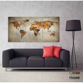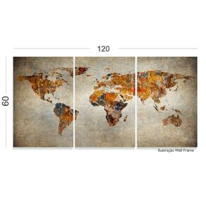 Quadro Mapa Mundi Rústico Para Sala Quarto Escritório 120x60