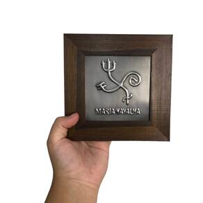 O Quadro Maria Navalha Madeira Imbuia e Metal, combina a resistência do aço com a elegância da madeira de carvalho, resultando em uma peça de beleza única e profundo significado espiritual. Perfeito para adornar sua casa, escritório ou altar pessoal, este quadro não apenas adiciona um toque de estética, mas também emana uma aura de proteção e orientação. Deixe a presença intrigante de Exú iluminar seu ambiente, criando uma atmosfera de clareza e confiança em sua jornada espiritual.